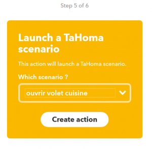 Dans l’idée, il faut créer un Applet dans IFTTT, au niveau du “This” indiquer Google Assistant puis dans “That” on sélectionne Tahoma et on choisi un scénario.