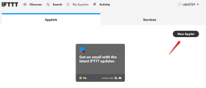 Sur la page https://ifttt.com enregistrez vous par exemple avec un compte Google ou créer votre compte.