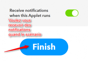 Et voilà il ne reste plus qu’à cliquer sur Finish pour que votre Applet, scénario Google home, soit possible d’être lancé par la voix.