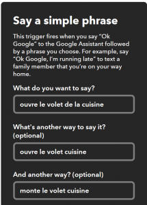 Ouverture d’un volet Somfy par Google Home