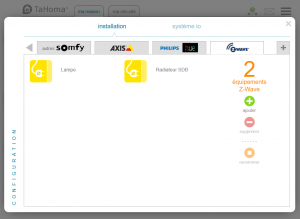 Si vous possédez une Tahoma ou SomfyBox, vous avez la possibilité de d’intégrer ce plug pour le faire interagir avec votre système domotique Somfy en appuyant sur la configuration