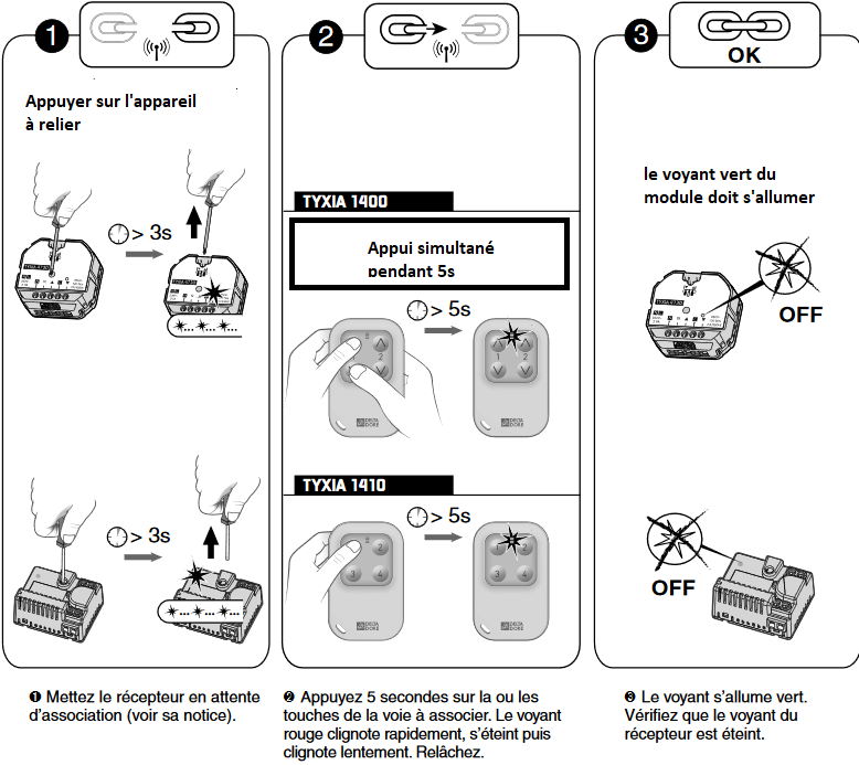 Comme pour l’ensemble de vos modules que vous voulez relier, que ce soit pour Delta Dore ou une autre marque, il vous faut appuyer sur le module puis la télécommande.